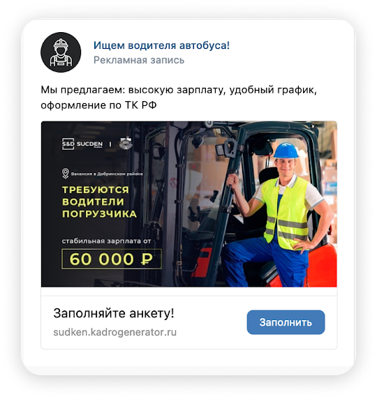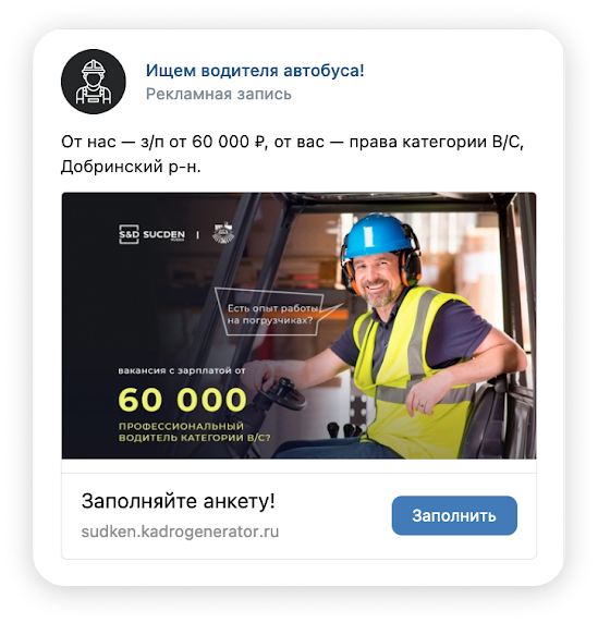 — кандидат должен иметь опыт работы на погрузчиках Manitou, Komatsu от 6 мес. — кандидат должен быть готов работать в Добринском районе Липецкой области. — эти требования снижают количество потенциальных кандидатов и аудитории в целом
